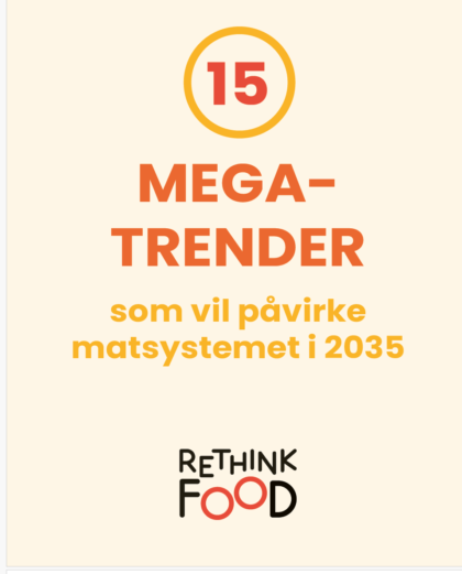 Rethink Food har identifisert 15 megatrender som de mener vil påvirke matsystemet i 2035. Noen trender er store og ustoppelige som godstog på full maskin. Andre er konsekvenser av at større endringer vil skje. Alle trendene påvirker hverandre i større eller mindre grad. Les hele rapporten her: rethink-minirapport-090623